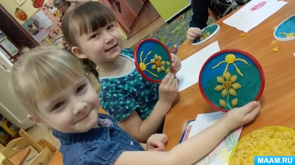 3. побуждать детей создавать выразительный образ в своих работах с помощью макаронных изделий и круп;